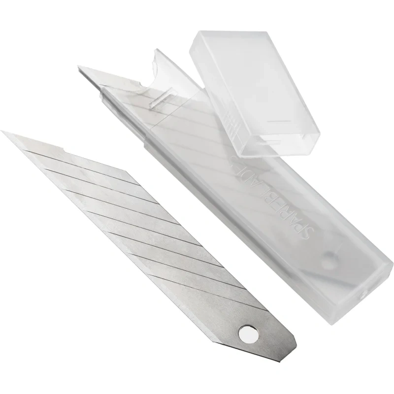 Лезвия предназначены для универсальных ножей и подходят для резки бумаги, ткани, кожи, плёнки и других материалов. Они изготовлены из высокоуглеродистой стали SK5, обладающей повышенной износоустойчивостью и прочностью, что обеспечивает долговечность и стабильное качество реза.
