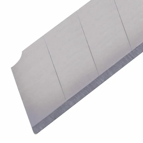Изготовлены из углеродистой стали и меют форму трапеции. Ширина лезвий - 18 мм, толщина - 0,5 мм. 10 штук в комплекте. Поставляются в пластиковом пенале.