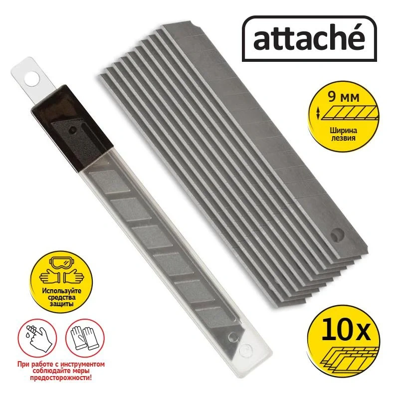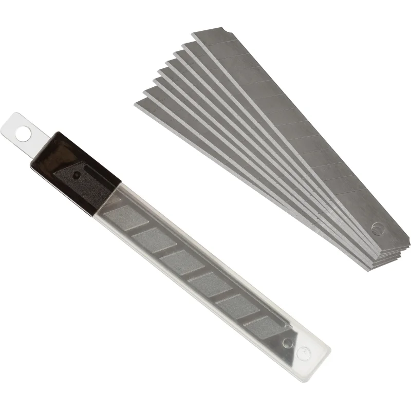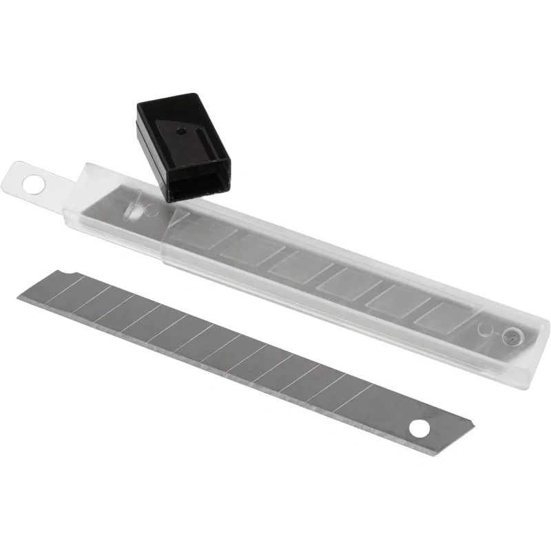 Лезвия для канцелярского ножа 10 шт в пластиковой коробке, ширина 9 мм