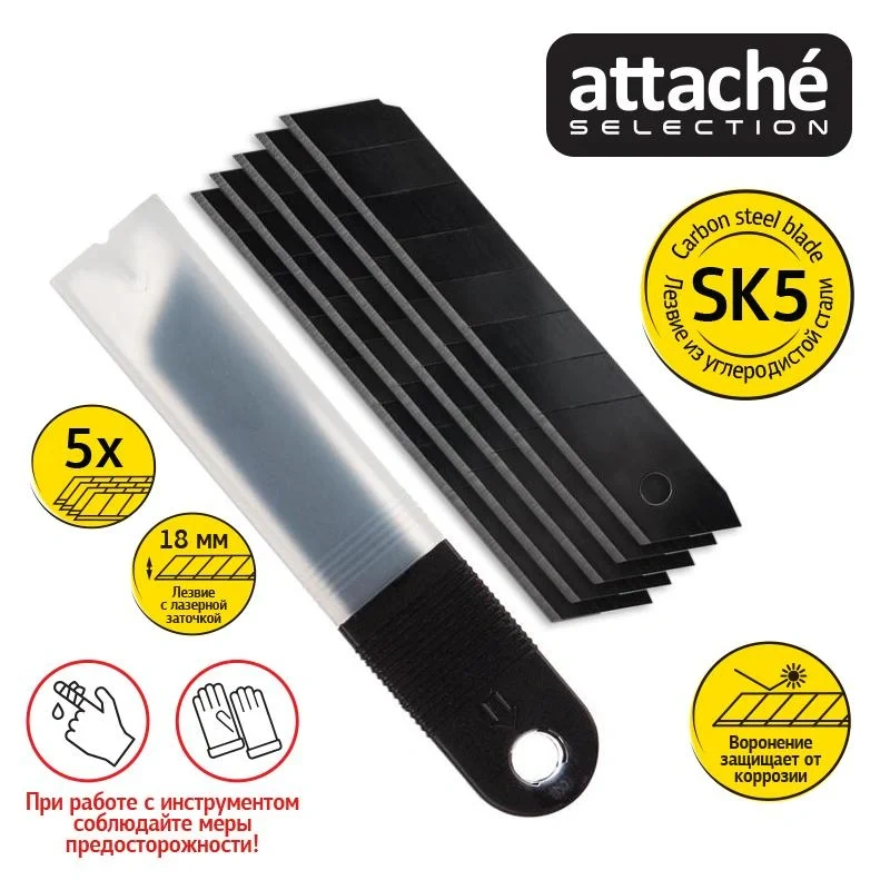 Лезвие для ножей запасное Attache Selection 18мм сегм.воронение,SK5, 5шт/уп