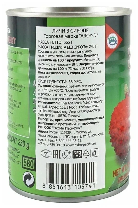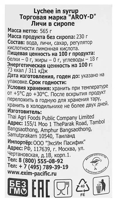 Личи aroY-D в сиропе, 565 г – тропический фрукт с белой сочной мякотью, вкус которой немного напоминает вкус винограда. Этот плод невероятно полезен, так как насыщен витаминами, в том числе B и C, а также богат пектином, который способствует нормализации обмена веществ. Витамин PP, содержащийся в мякоти личи, особенно ценен для организма человека, так как отвечает за все восстановительные процессы внутренних органов. В азиатских странах личи считается естественным афродизиаком, а также оказывает тонизирующее действие.