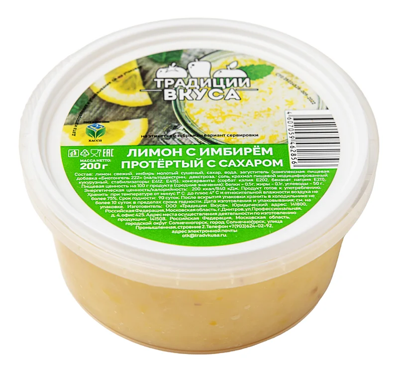 Лимон и имбирь Традиции вкуса протертые-дробленые с сахаром, 200г