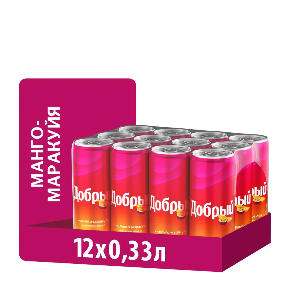 Напиток газированный Добрый Манго-маракуйя, 330мл, ж/б