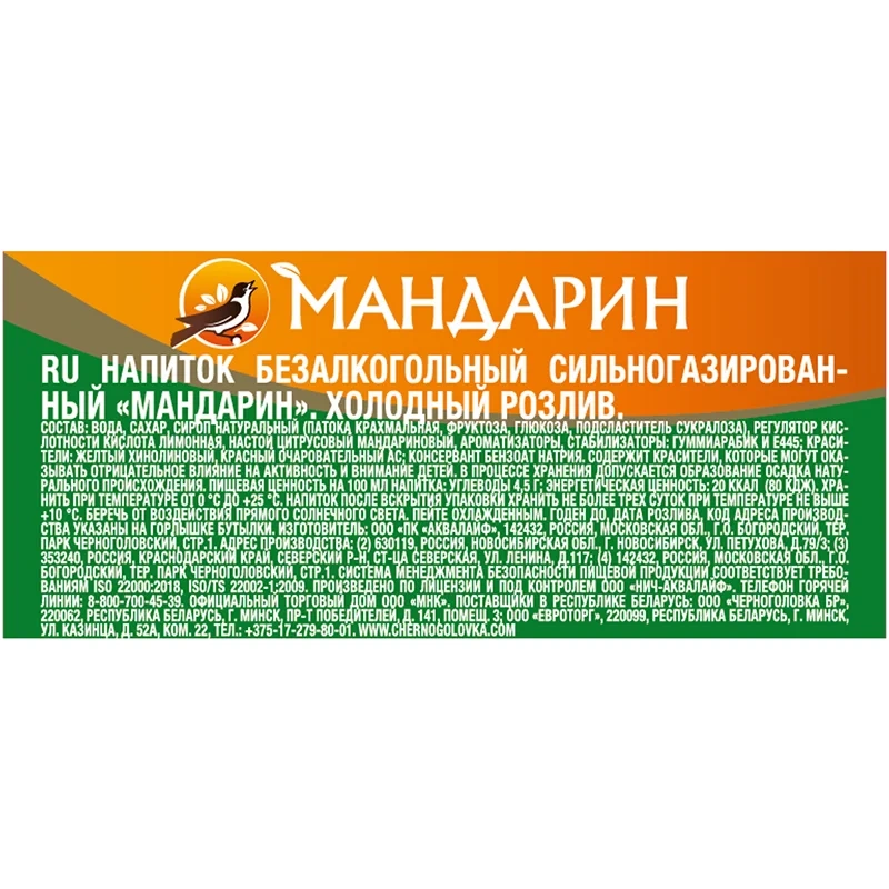 Напиток газированный Черноголовка Мандарин 500мл, стекло