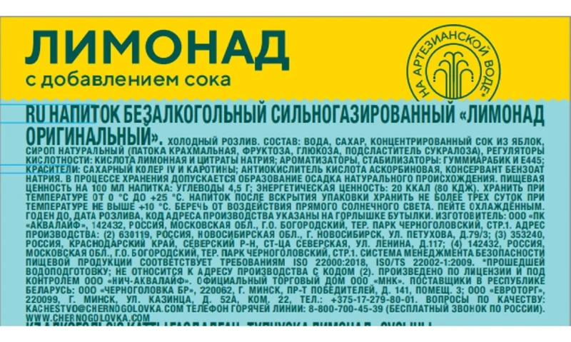 Напиток газированный Калиновъ Лимонадъ Классический, 500мл