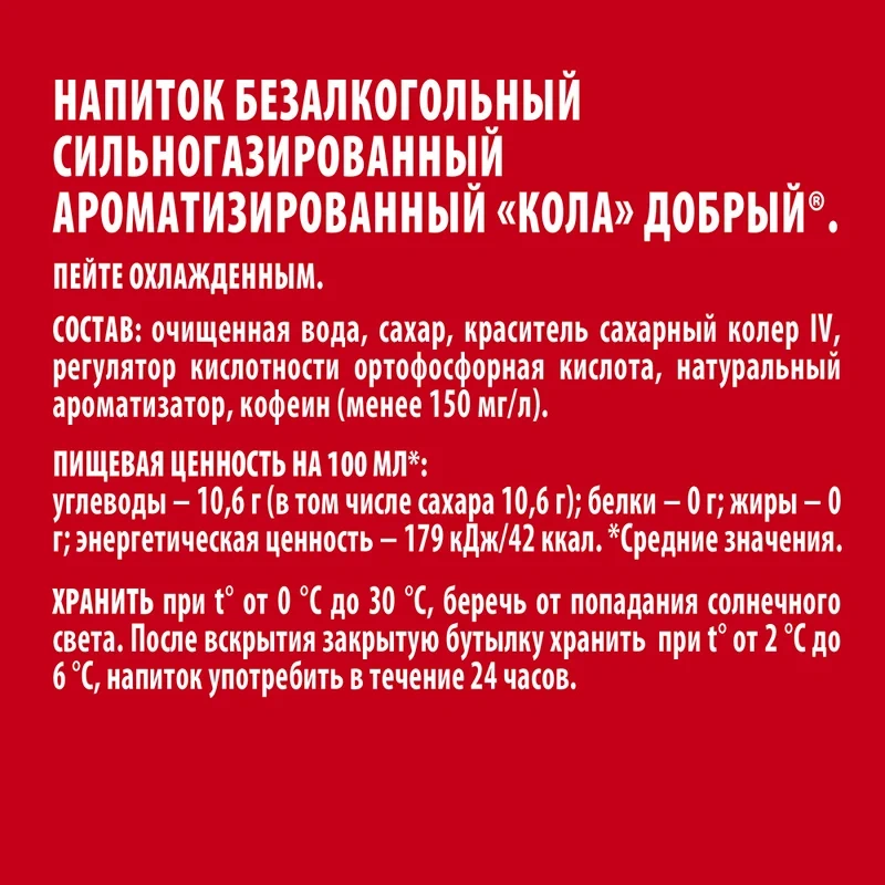 Напиток газированный Добрый Cola, без сахара, 500мл