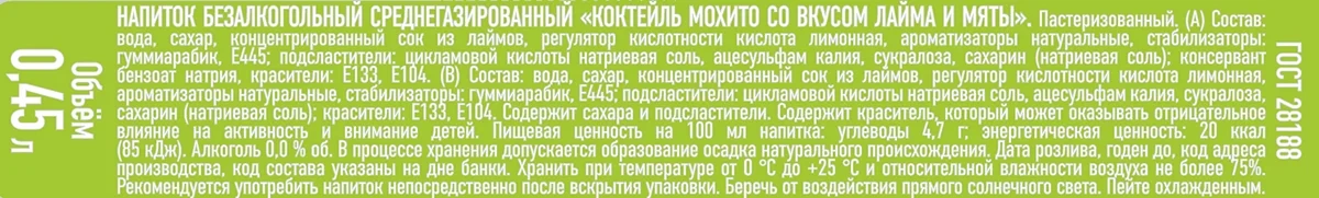 Напиток Черноголовка мохито лайм и мята газированный, 450мл