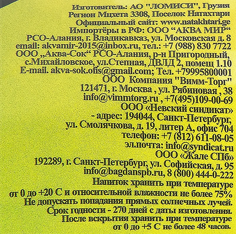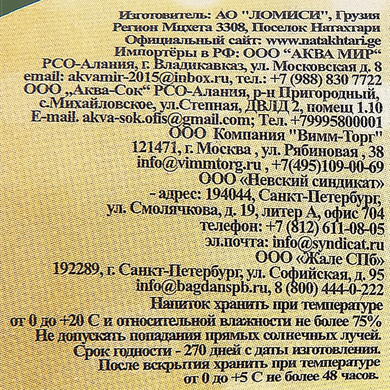 Лимонад Натахтари Груша, 500мл x 20 шт