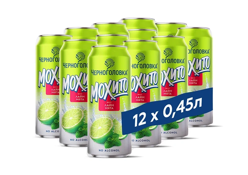 Напиток Черноголовка мохито лайм и мята газированный, 450мл x 12 шт
