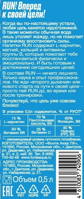 Напиток витаминизированный Run со вкусом малины и ежевики негазированный, 500мл