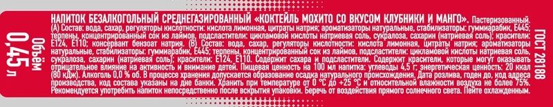 Напиток Черноголовка мохито клубника-манго газированный, 450мл