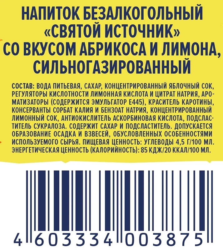 Напиток Святой Источник Лимонад абрикос-лимон газированный, 1л
