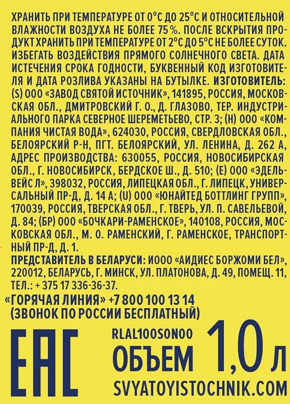 Напиток Святой Источник Лимонад груша-цитрус газированный, 1л