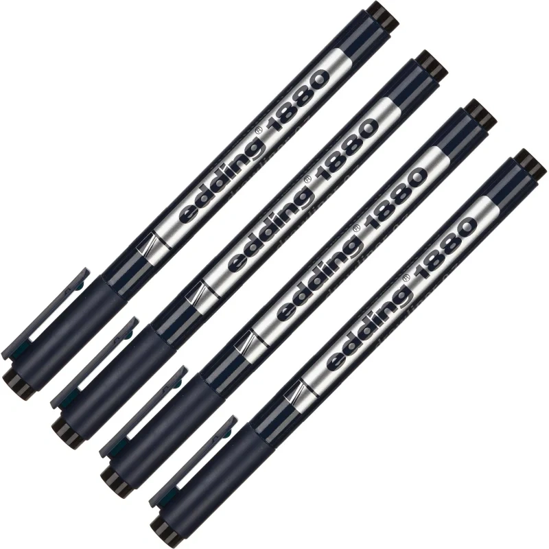 Набор ручек капиллярных Edding 1880 4шт, 0.1-0.25мм, 0.3-0.35мм, 0.5мм, 0.7мм, черный
