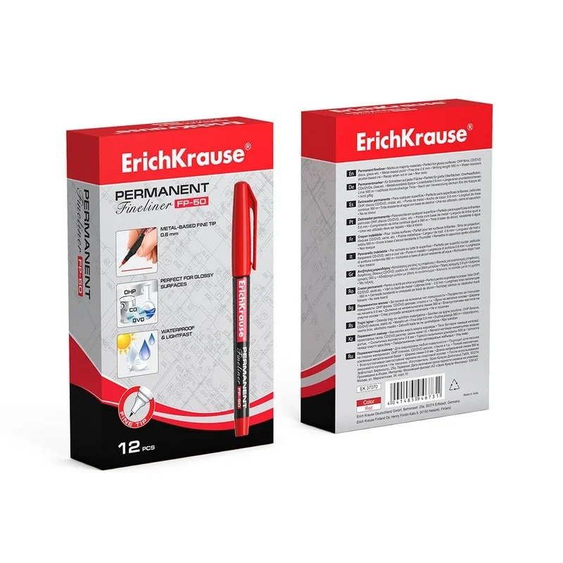 Перманентный линер ErichKrause FP-50, цвет чернил красный