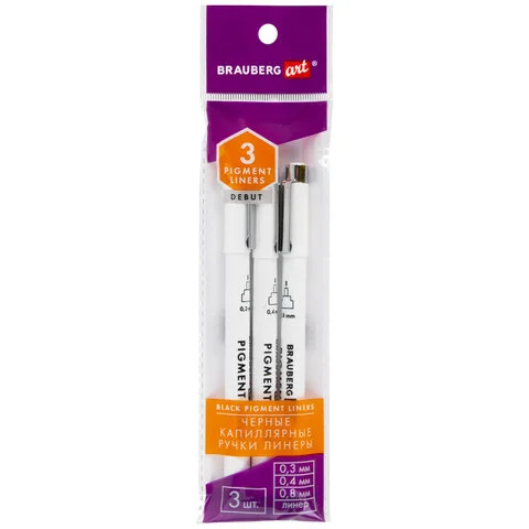 Набор ручек капиллярных Brauberg ART DEBUT черные, 0.3/0.4/0.8мм, 3шт/уп