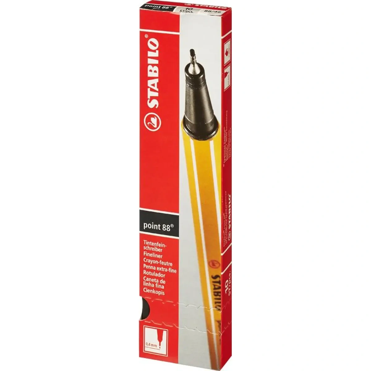 Ручка капиллярная Stabilo Point 88 черная, 0.4мм, полосатый корпус