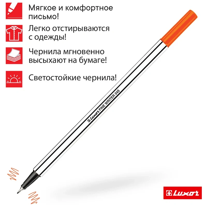 Ручка капиллярная Luxor Fine Writer 045 оранжевая, 0.45мм, белый корпус