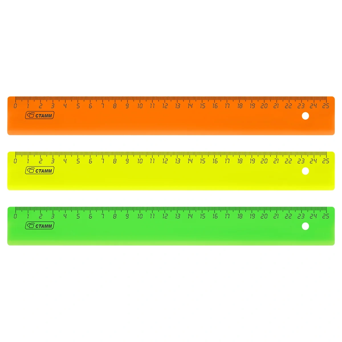 Линейка СТАММ Neon – отличный помощник для создания ровных линий. Размер товара – 25 см, ширина – 30 мм. Изделие имеет прочный и лёгкий корпус, безопасные закруглённые края и чёткую контрастную миллиметровую шкалу. Товар представлен в ярких флуоресцентных цветах.