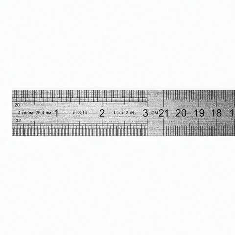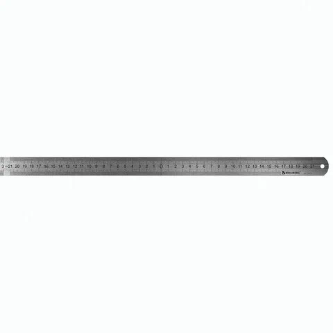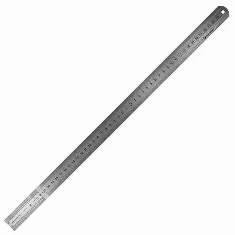 Изготовлена из высококачественной пружинистой стали. Длина шкалы составляет 50 см. Линейка обладает четкой разметкой, что делает ее удобной в использовании. Имеет двойную градацию шкалы (сантиметр, дюйм). Устойчива к деформации.