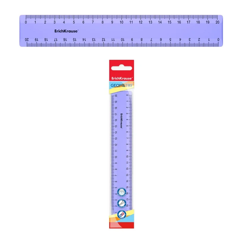 Линейка из высококачественного пластика с двухсторонней шкалой. Точная миллиметровая шкала; длина разметки составляет 20 см. Пастельный фиолетовый цвет.