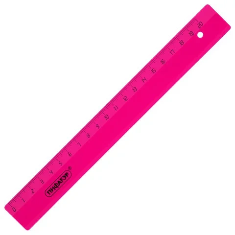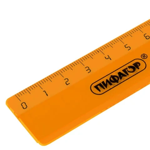 Линейка Пифагор 20см, пластиковая, прозрачная, неоновая, ассорти
