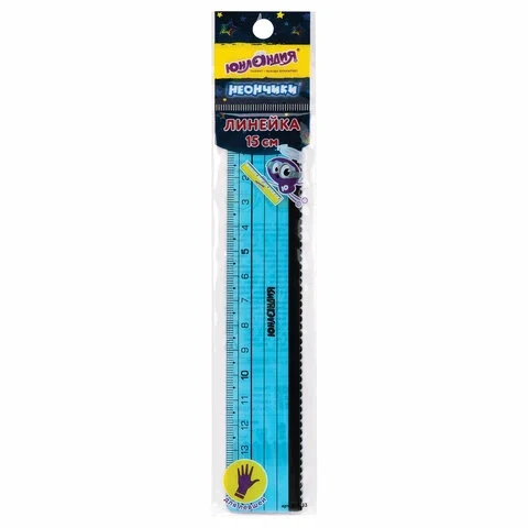 Линейка пластик 15 см ЮНЛАНДИЯ 'НЕОНЧИКИ', ассорти, с волнистым краем, для левшей, 210733