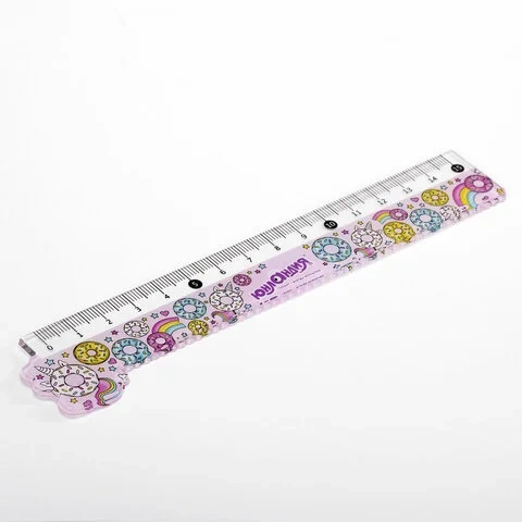 Прозрачная фигурная линейка c волнистым краем и принтом в виде сладостей. Имеет безопасные закруглённые углы. Длина шкалы составляет 15 см. Линейка обладает четкой разметкой, что делает ее удобной в использовании. Упакована в пакет с европодвесом.