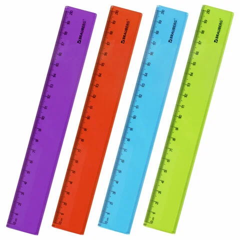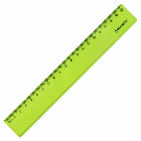 Линейка из прочного тонированного пластика ярких цветов. Имеет безопасные закруглённые углы. Линейка обладает четкой разметкой, что делает ее удобной в использовании. Длина шкалы составляет 20 см. Поставляется в нескольких вариантах цвета (без возможности выбора). Упакована в пластиковый пакет с подвесом.