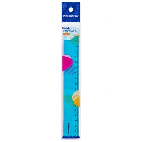 Линейка пластиковая 20 см BRAUBERG 'FRUITY', тонированная, ассорти, 210766