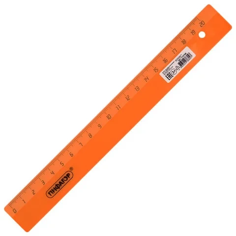 Линейка пластиковая 20 см ПИФАГОР, непрозрачная, неоновая, ассорти, 210788