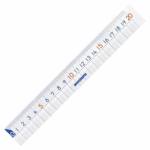 Прозрачная линейка c сине-красным принтом. Имеет безопасные закруглённые углы. Длина шкалы составляет 20 см. Линейка обладает четкой разметкой, что делает ее удобной в использовании. Упакована в пакет с европодвесом.