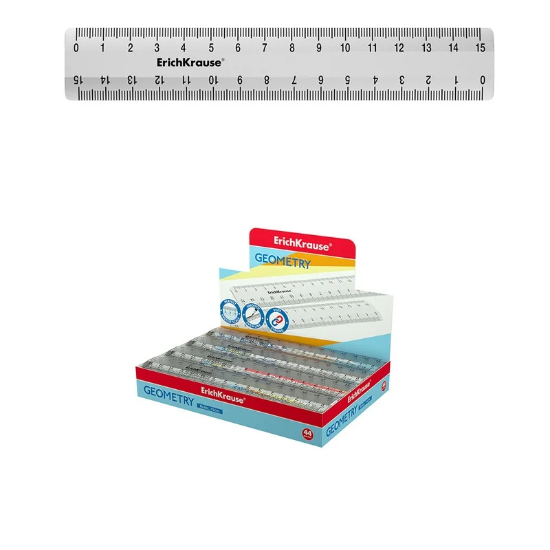 Линейка пластиковая ErichKrause Clear, 15см, прозрачный, в коробке-дисплее