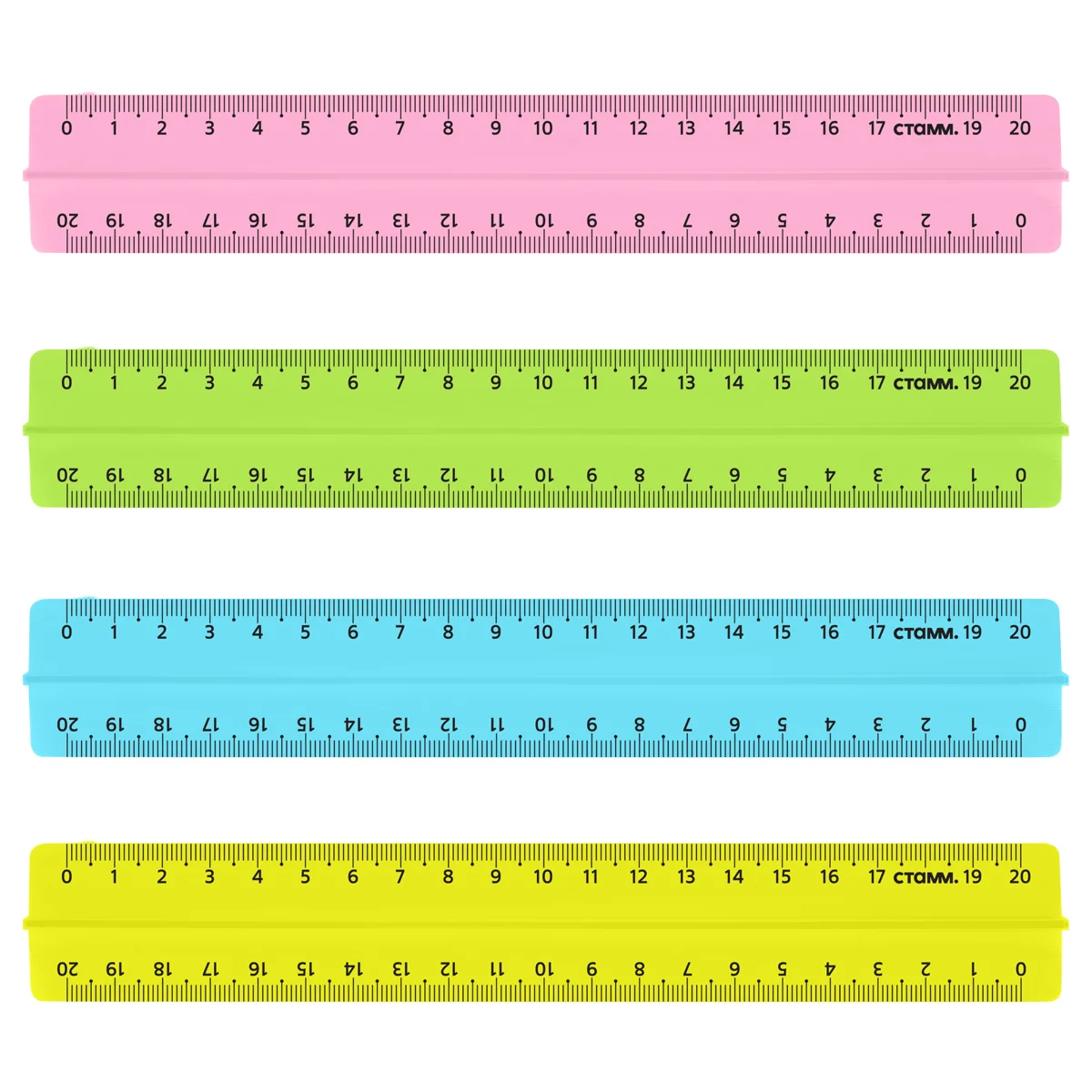 Линейка Стамм 20см, прозрачная, неон. ассорти, ЛН17
