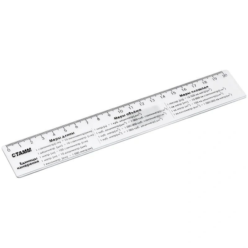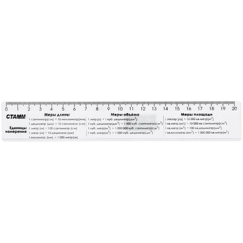 Линейка Стамм Единицы измерения 20см, прозрачная, ЛС01