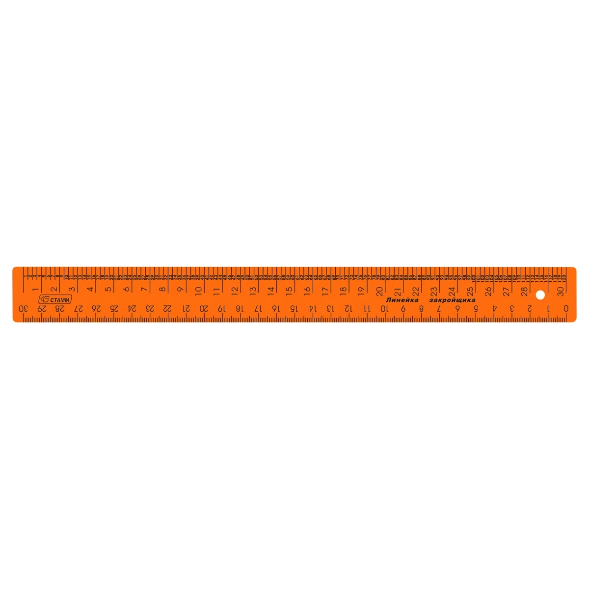Линейка закройщика 30см СТАММ, пластиковая, непрозрачная, оранжевая