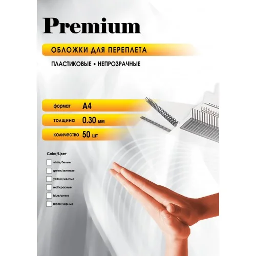 Обложки пластиковые непрозрачные цветные для лицевой стороны переплета. Плотность - 0,3мм. Цвет- белый. Формат А4.