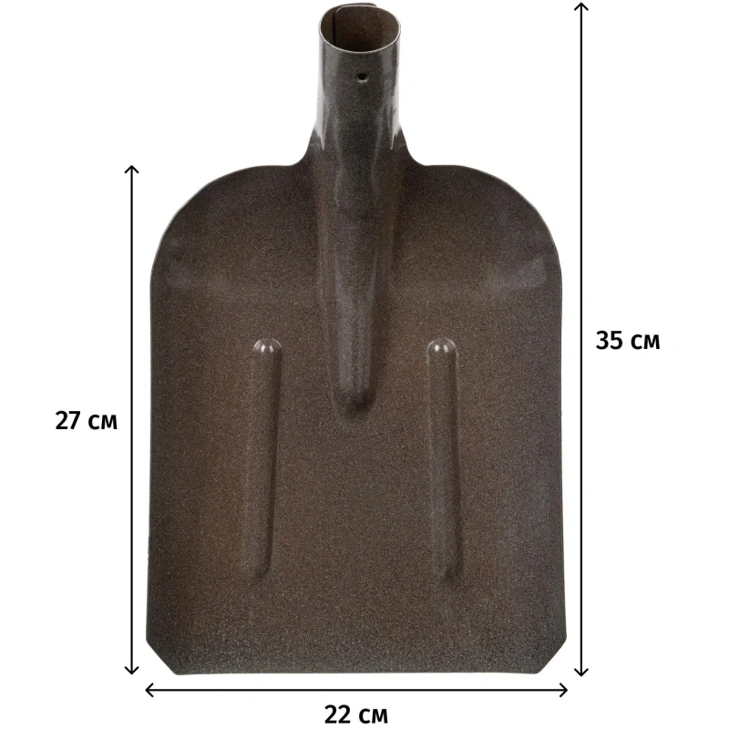 Лопата совковая 27x22 см без черенкаСовковая лопата является простым и универсальным инструментом для широкого фронта работ, от перекопки твердых почв до погрузки или перемещения рыхлых материалов небольшой крупности, например песка, угля, щебня и другого вида сыпучего материала.Высокое ребро жесткости на тулейке в месте наибольших нагрузок на излом, большая глубина тулейки в полотне лопаты, а также заметный продольный изгиб полотна, придают ей прочность. При изготовлении полотна используется материал толщиной 1,5 мм. Порошковая окраска полотна(ковша): нет. Наличие ребер жесткости: с ребрами жесткости на полотне. Тулейка под черенок: 40 мм. Внимание! Рукоятка/черенок в комплект поставки не входит и приобретается отдельно. Габариты полотна: 27x22 см .Материал ковша: металл.Вес изделия: 0.8 кг.Цвет лопаты может отличаться.