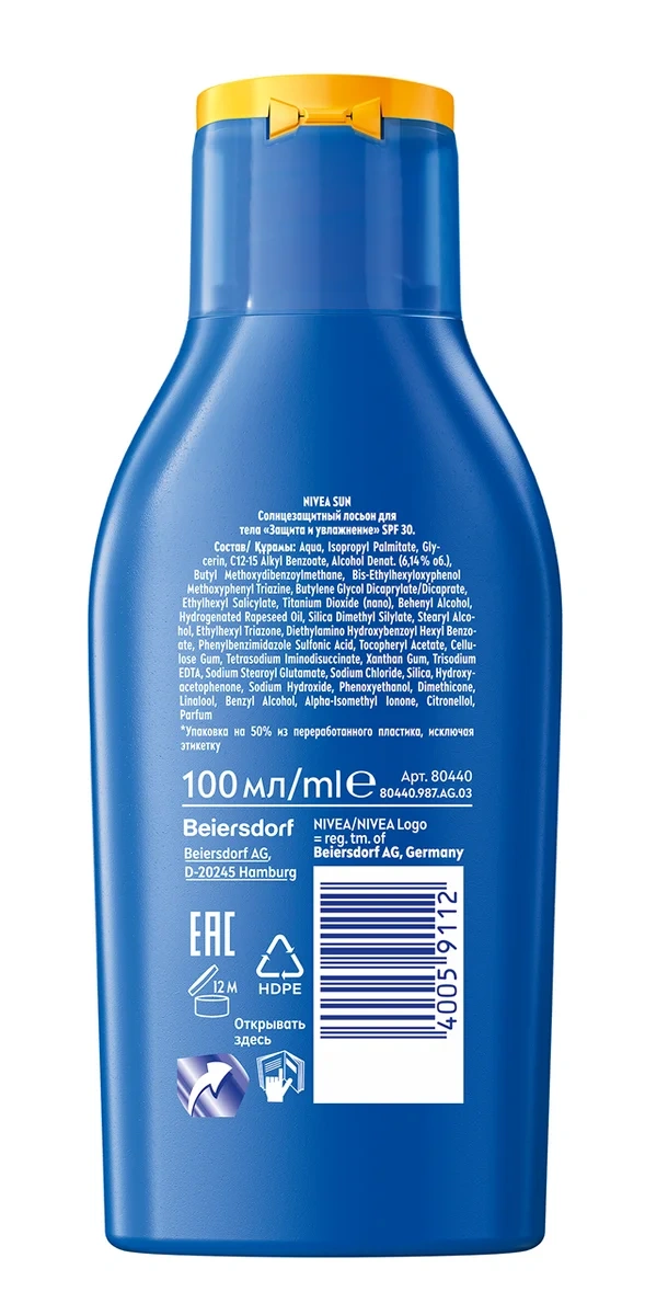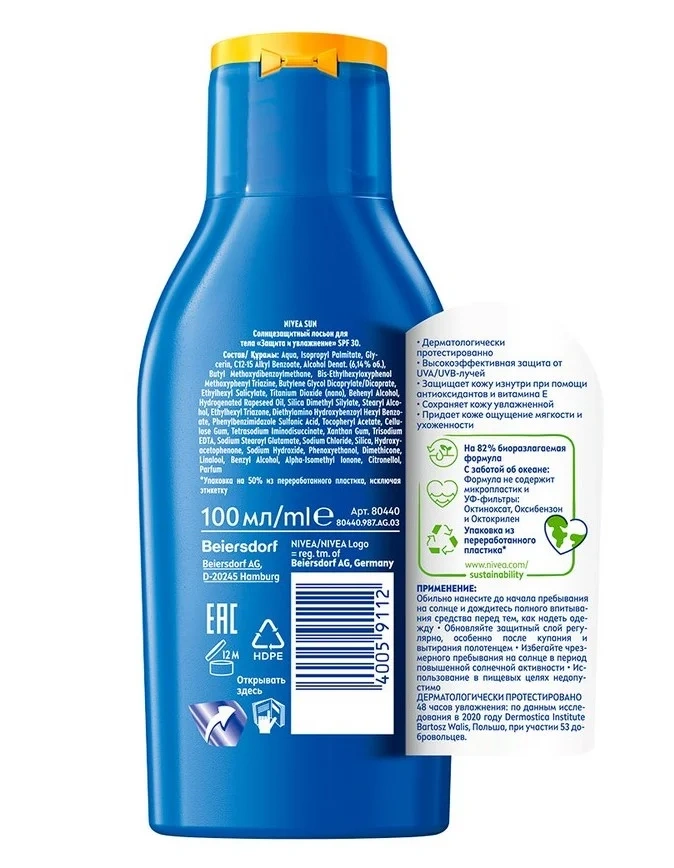 Лосьон для тела Nivea солнцезащитный Защита и увлажнения SPF 30, 100мл