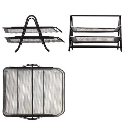 Лоток горизонтальный для бумаг Attache 3 секции, черный, металлическая сетка