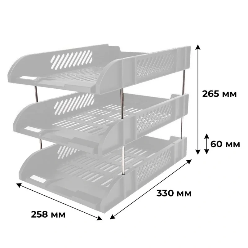 Лотки горизонтальные для бумаг, КОМПЛЕКТ 3 шт., 335х232х246 мм, серый, BRAUBERG FILE, 238108, ЛТ560