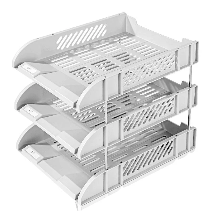 Лотки горизонтальные для бумаг, КОМПЛЕКТ 3 шт., 334х255х271 мм, серый, BRAUBERG GRAND OFFICE, 238110