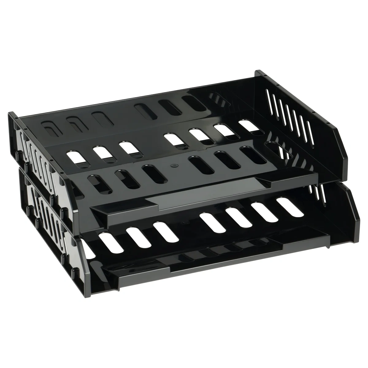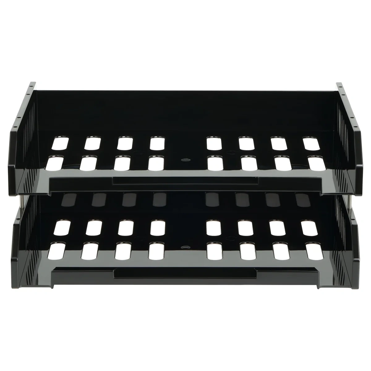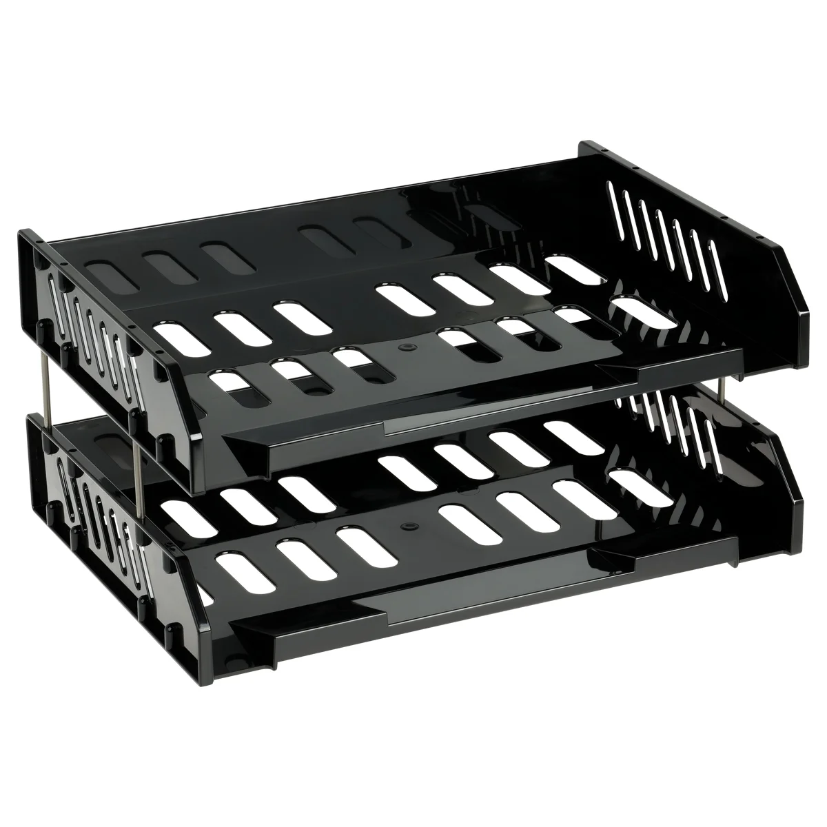 Лоток для бумаг горизонтальный СТАММ 'Сити', набор 2шт., на мет. стержнях, широкая загрузка, черный