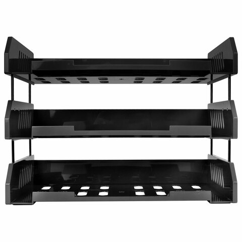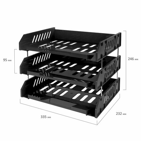Лотки горизонтальные для бумаг, КОМПЛЕКТ 3 шт., 335х232х246 мм, черный, BRAUBERG FILE, 238107, ЛТ561