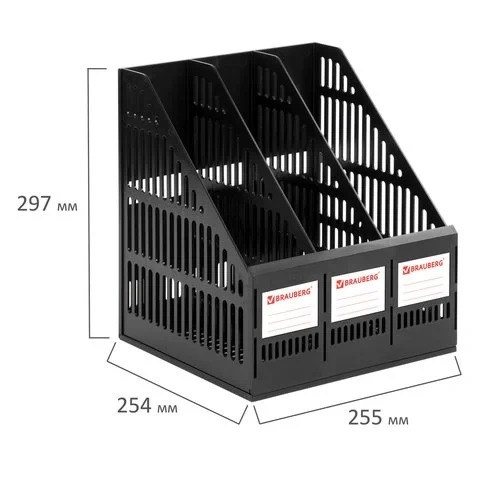 Накопитель вертикальный для бумаг Brauberg Radikal А4, 3 секции, 207мм, черный
