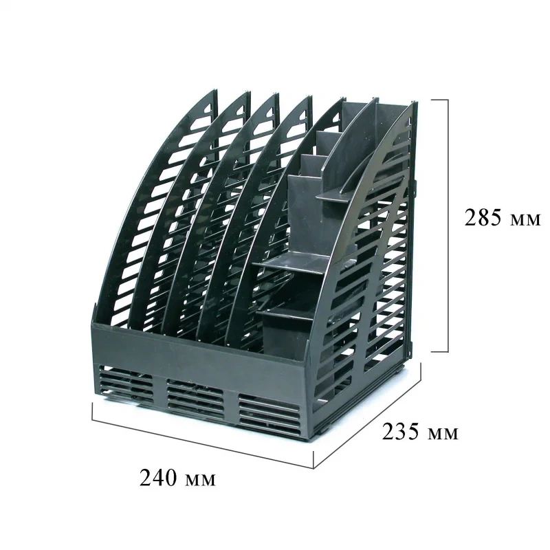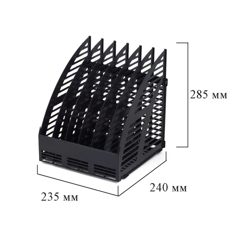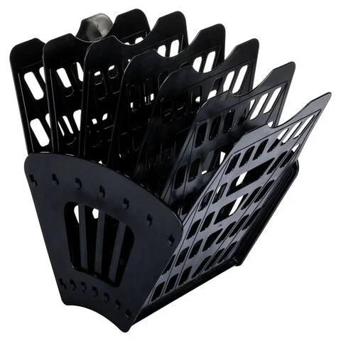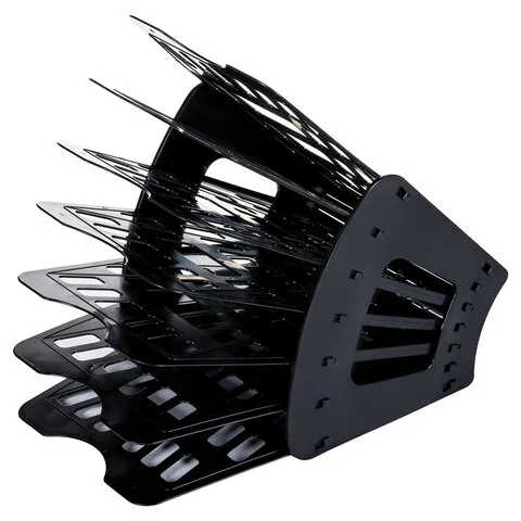 Лоток для бумаг веерный Brauberg Basic А4, черный, сетчатый, 6 отделений