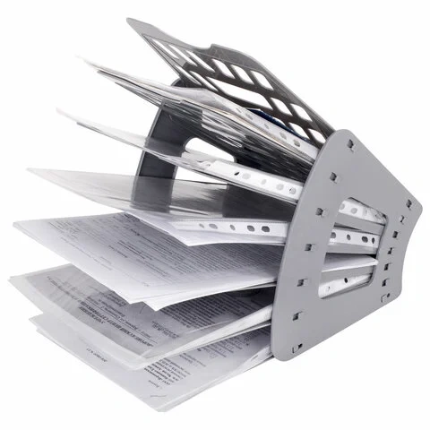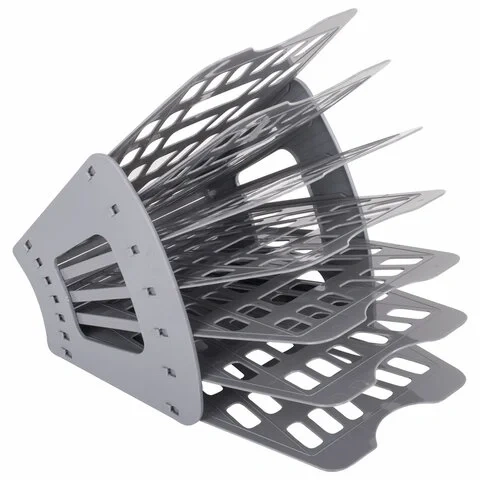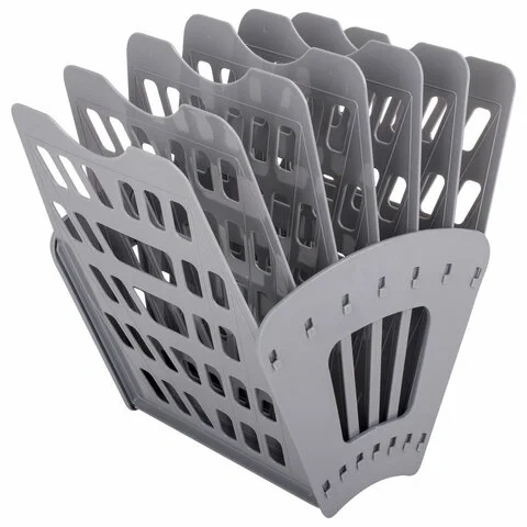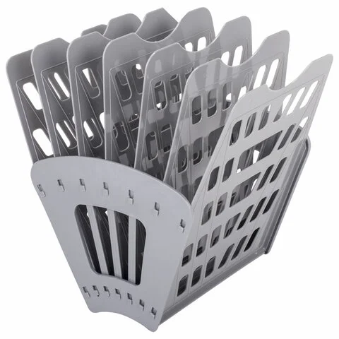 Лоток для бумаг веерный Brauberg Basic А4, серый, сетчатый, 6 отделений