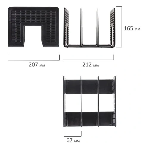 Лотки для бумаг секционные Беларусь А4, 3 секции, 240мм, черный, 4С143
