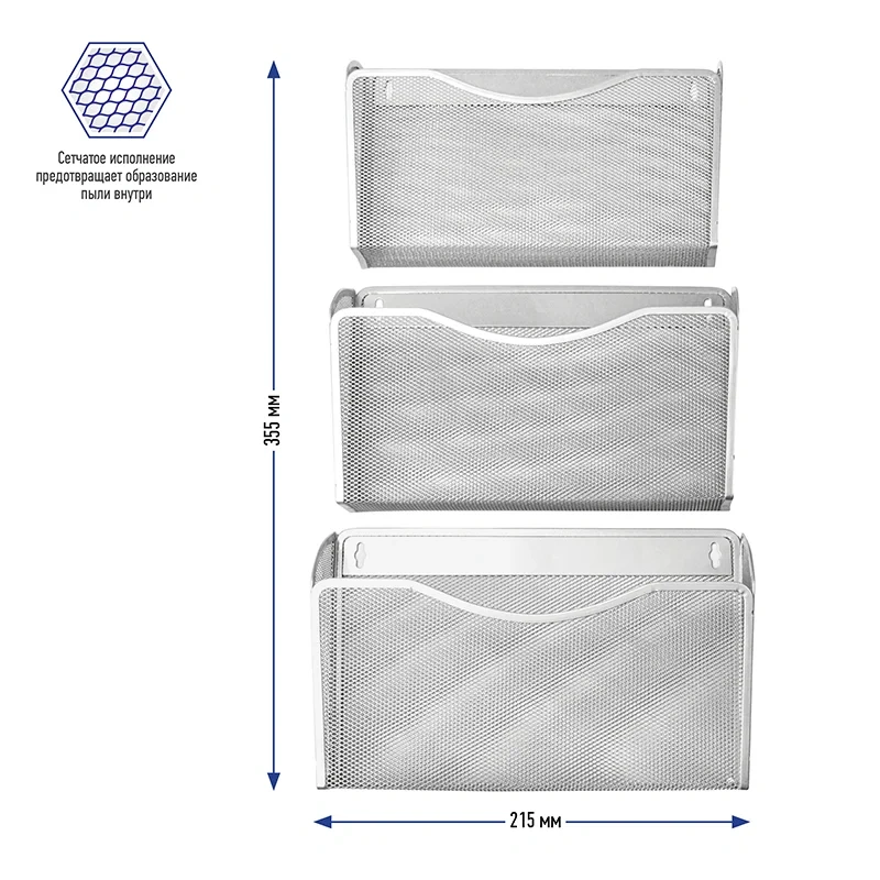 Лотки настенные Brauberg Germanium А4, 3 отделения, серебристый, 231975