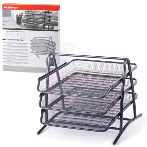 Лоток для бумаг Erich Krause А4, 3 секции, черный, 22513